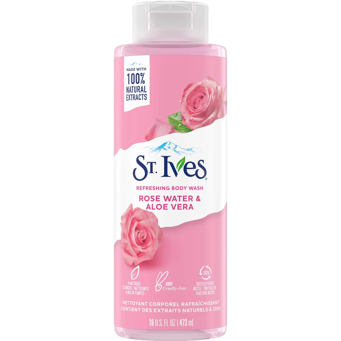 Treat yourself to a full-body cleanse! Made with 100% natural rose and aloe Vera extracts, St. Ives Rose Water & Aloe Vera Refreshing Body Wash wraps you in a sudsy lather to soften your skin and leave it feeling refreshed. There’s no questioning this classic beauty care duo! Formulated with plant-based cleansers, this body wash pampers the skin, leaving it soft, supple and hydrated. This paraben-free, dermatologist-tested formula does not contain animal-derived ingredients. This body wash packaging features a bottle made with 100% recycled plastic.A key ingredient in this cleanser is rose extract. Rose petals are known to soothe and smooth skin.