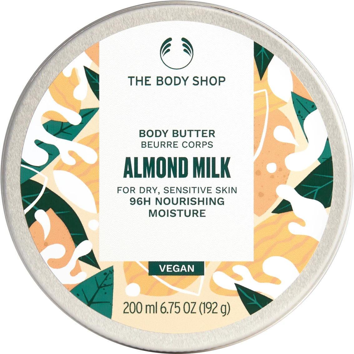 Love, soothe and nourish dry, sensitive skin like never before with the best ever Almond Milk Body Butter from The Body Shop. Now made with 95% ingredients of natural origin, including Community Fair Trade almond milk and oil from Spain, handcrafted Community Fair Trade shea butter from Ghana and Community Fair Trade sesame seed oil from Nicaragua, this soothing body moisturizer leaves dry, sensitive skin feeling softer, smoother and nourished with 96-hour moisture. It even gives you a natural-looking glow. This super creamy body butter now comes in recyclable packaging* made with an aluminum lid and 100% recycled plastic tub, including Community Fair Trade recycled plastic from India. This means you can love your planet every time you love that beautiful body. Slather on this non-sticky, non-greasy moisturizer sparingly or generously. Seriously. Loving yourself never felt this good. *Where local facilities allow. Size: 200ml.